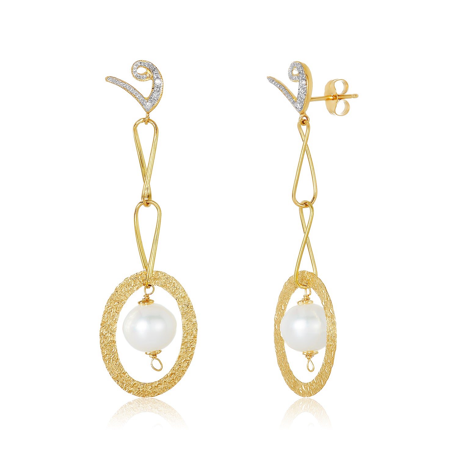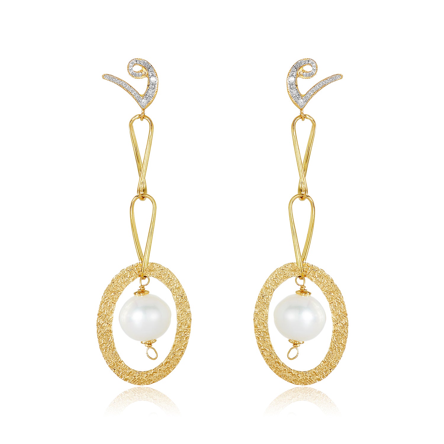 A sophisticated and beautiful Ivie yellow gold and pearl earrings. These peerless Nehita pearls are the perfect touch to your elegant look.
