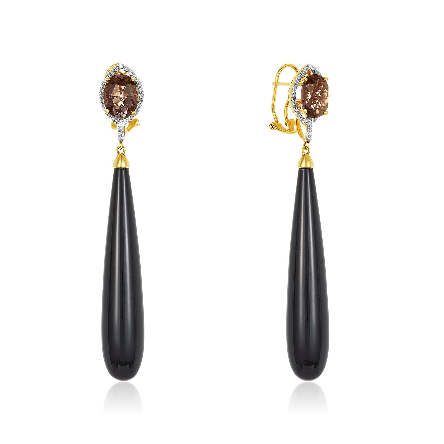 Smoky Quartz 18k Yellow Gold Onyx Drop Earring