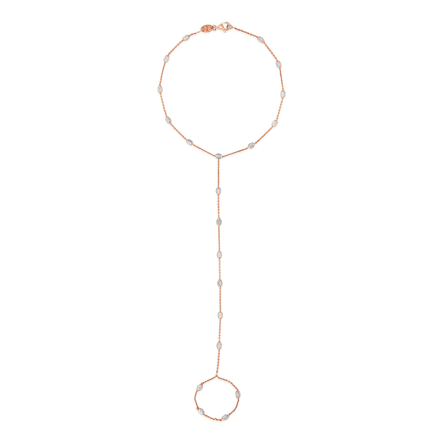 Nehita sexy finger diamond hand chain in rose gold chain and white gold balls.