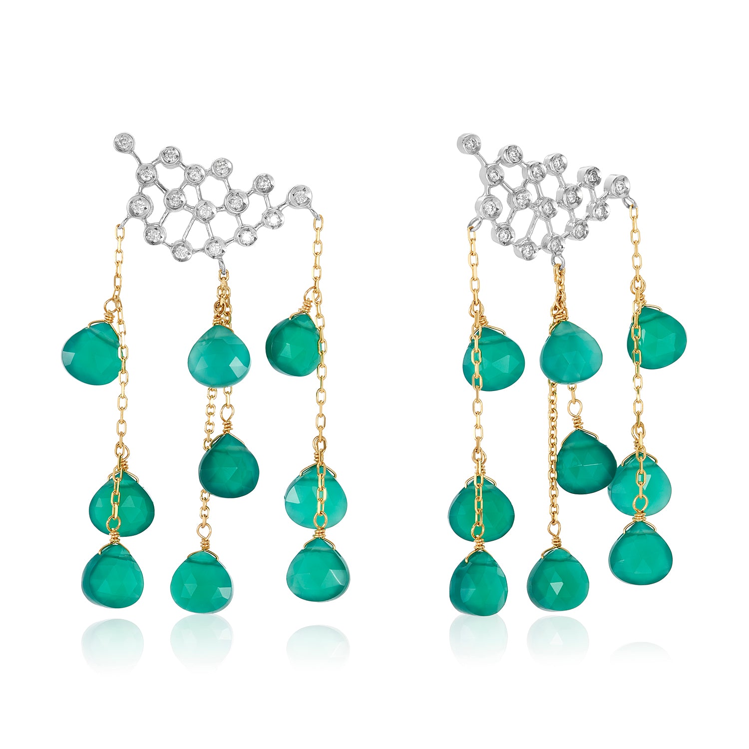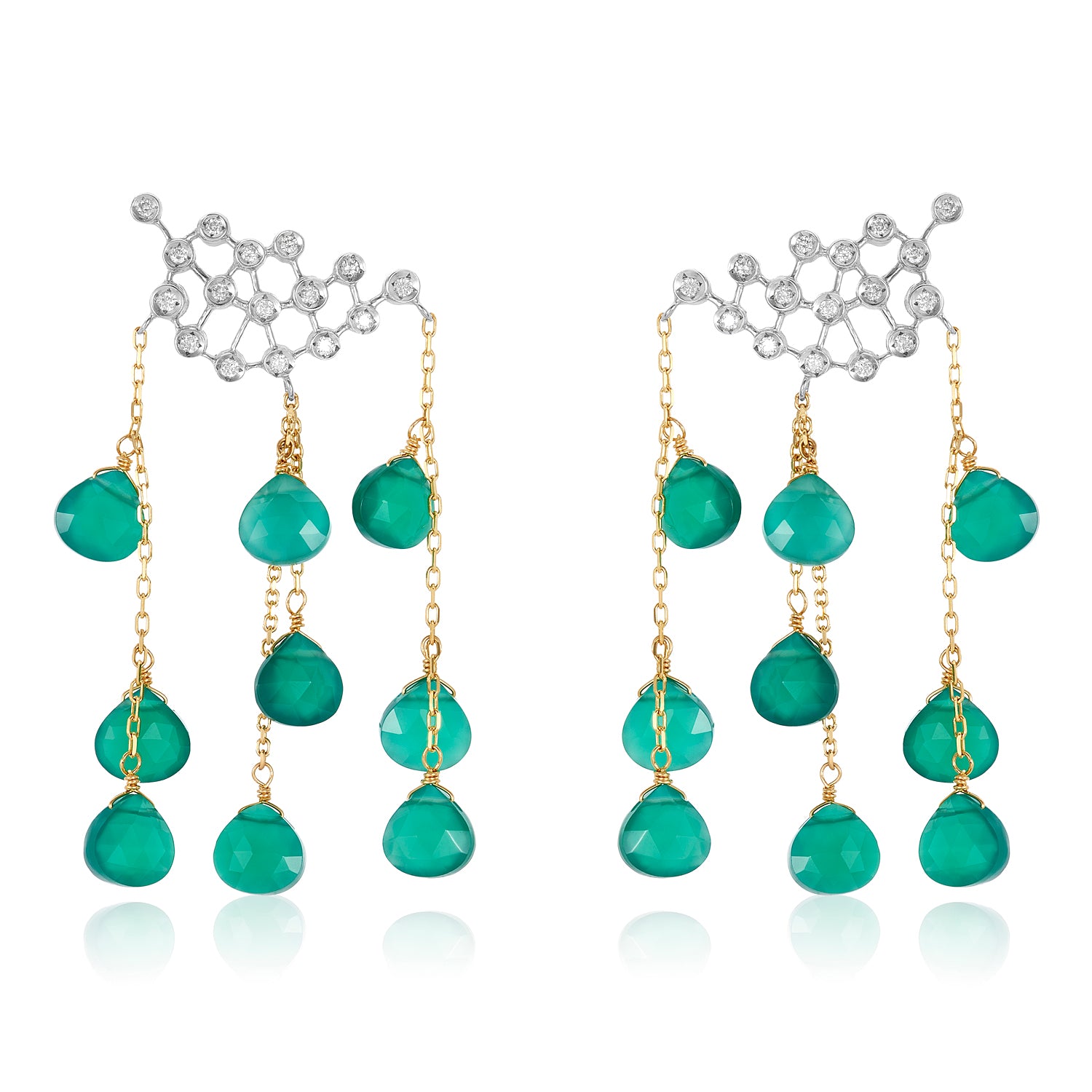 Raindrop green quartz & white diamond drop earrings is inspired by natural raindrops. The earrings are held by 14 karat yellow gold setting.  These earrings are so elegant, she will treasure them forever