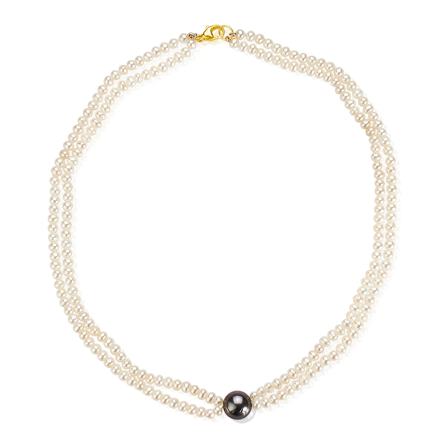 Nehita 18" contemporary double strand fresh-water pearl necklace with as single Tahitian pearl to add a modern touch to the classic double pearl strand