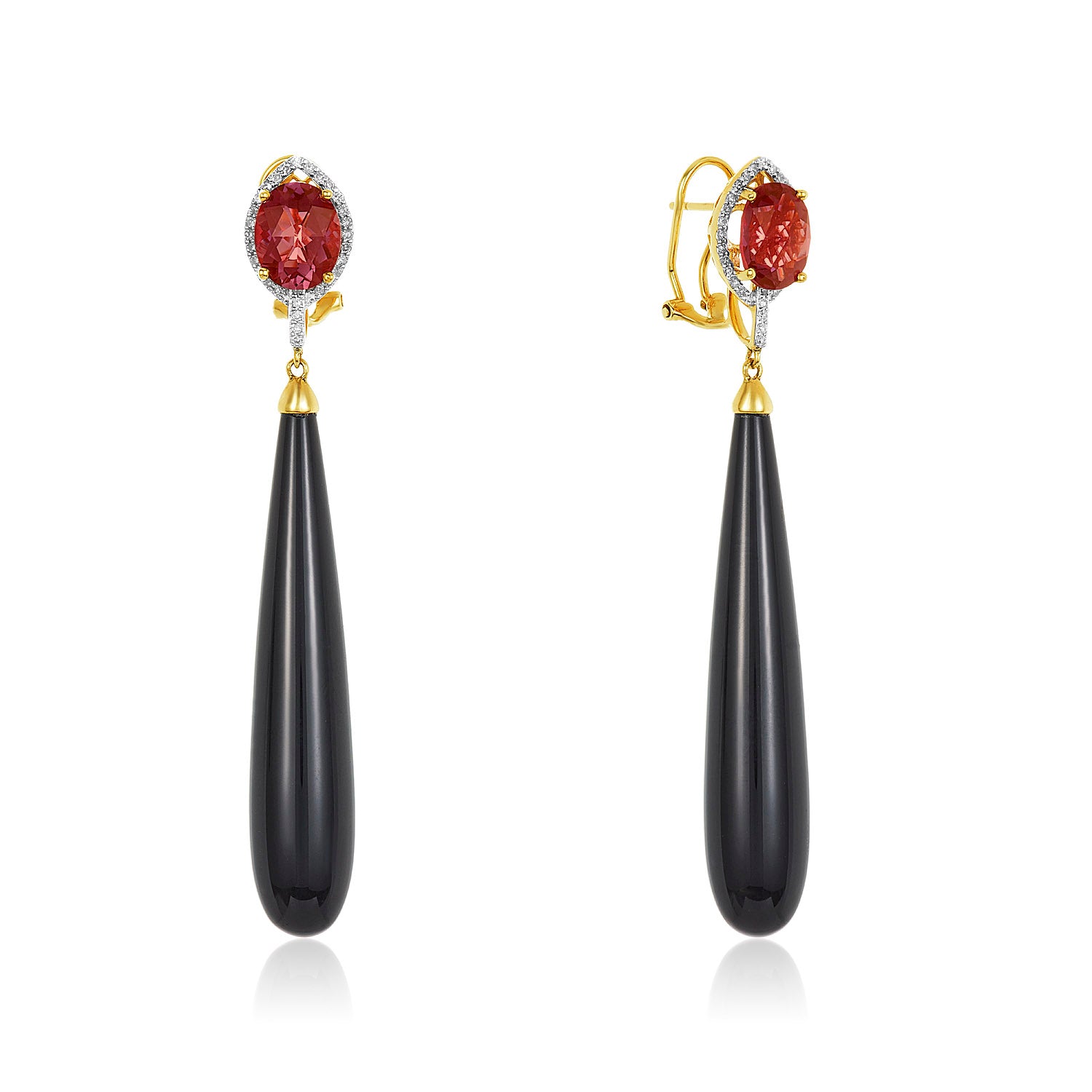 Garnet 18k Yellow Gold Onyx Drop Earring