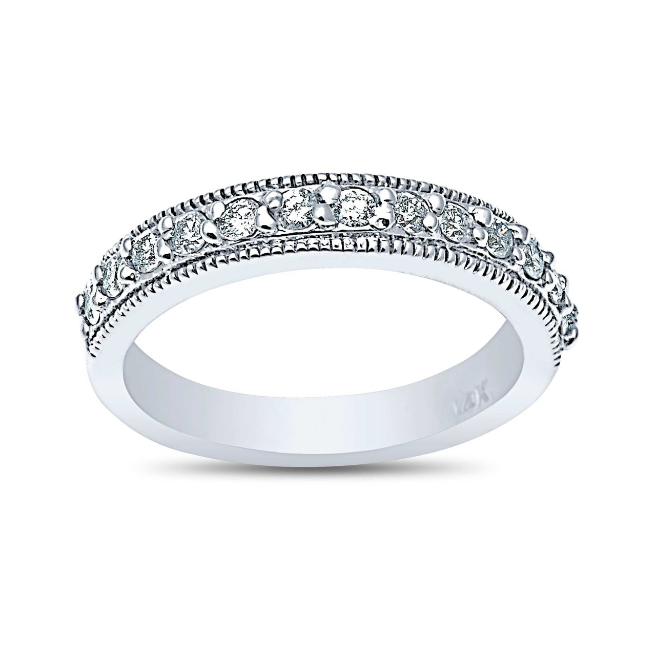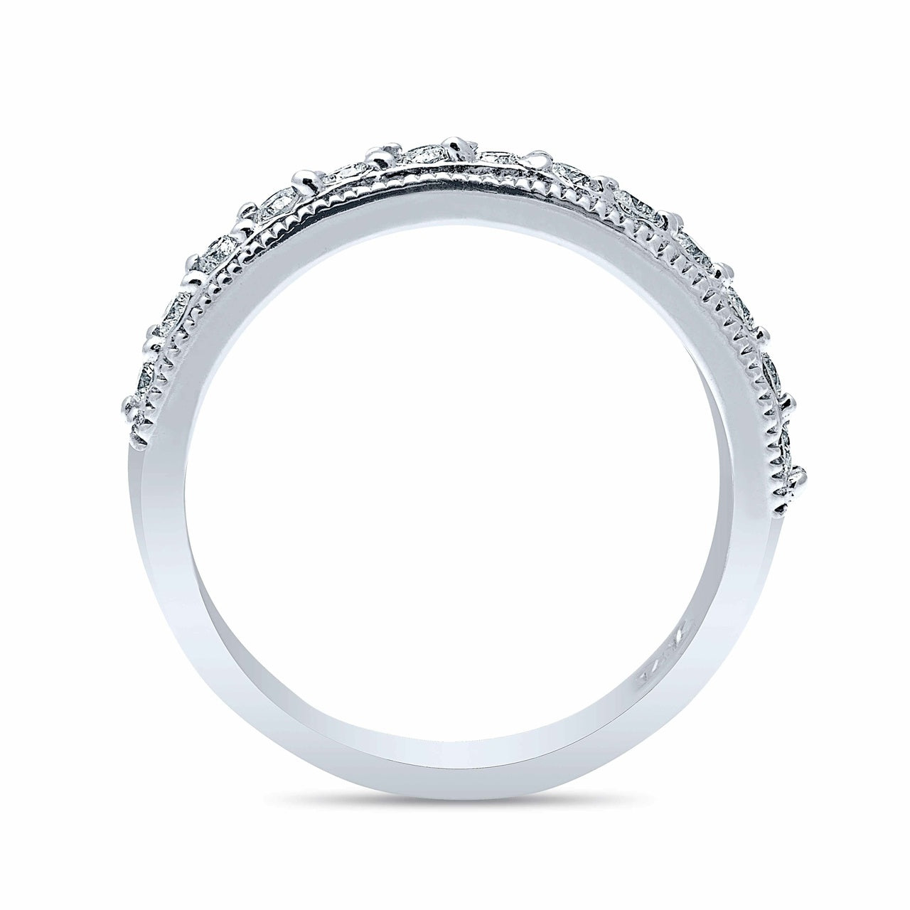 Radiant sculptured wedding band with 0.70 carats of round brilliant diamond set in 14 karat white gold, hand cast for rich detailing